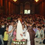 Como todos los primeros sábados de mes, desde hace dos años, los Heraldos del Evangelio – Caballeros de la Virgen – con la presencia de la Imagen peregrina de Nuestra Señora de Fátima y al amparo de la monumental representación de la Santísima Trinidad, que embellece la pared del altar del templo parroquial de San Bartolomé Apóstol, llevamos a cabo la devoción de la Comunión Reparadora pedida por Nuestra Señora de Fátima.